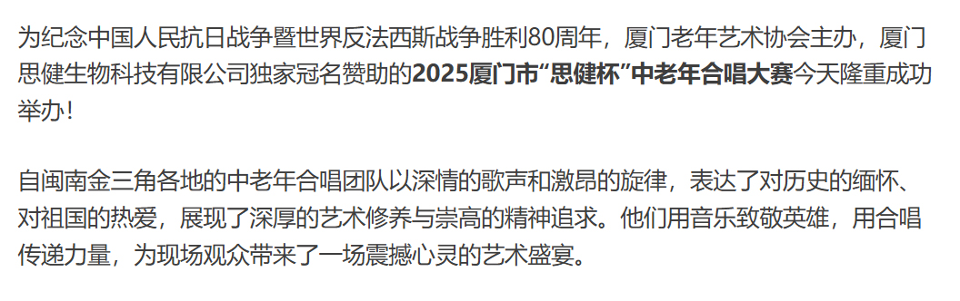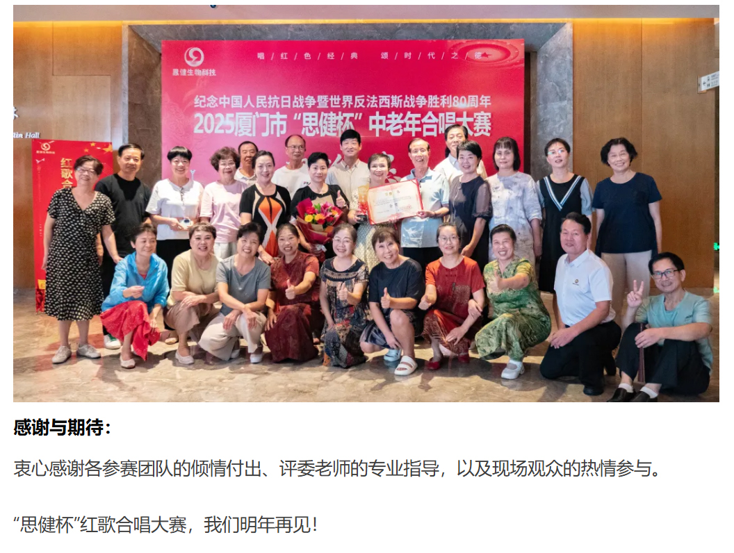 熱烈祝賀2025廈門市“思健杯”紅歌合唱大賽圓滿成功