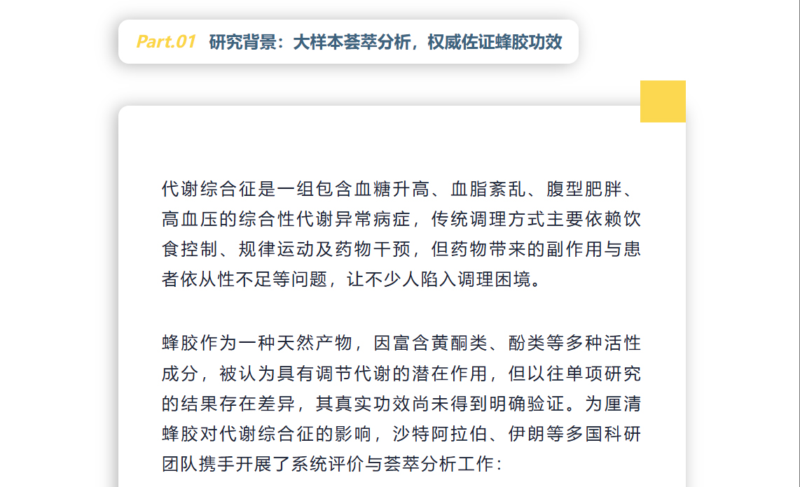 蜂膠科研再出新成果!20 項(xiàng)臨床試驗(yàn)證實(shí)調(diào)控血糖血脂精準(zhǔn),代謝綜合征人群新福音