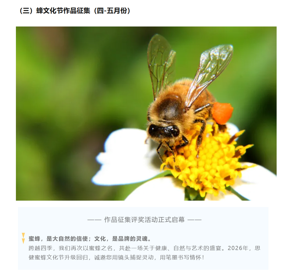 喜迎世界蜜蜂日暨2026思健蜜蜂文化節(jié)作品征集評(píng)獎(jiǎng)活動(dòng)開(kāi)始啦!